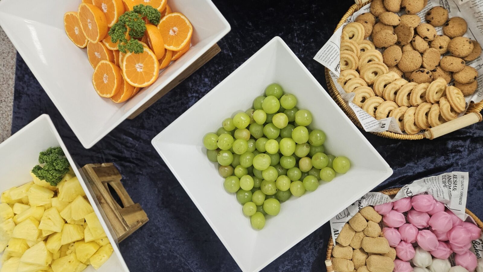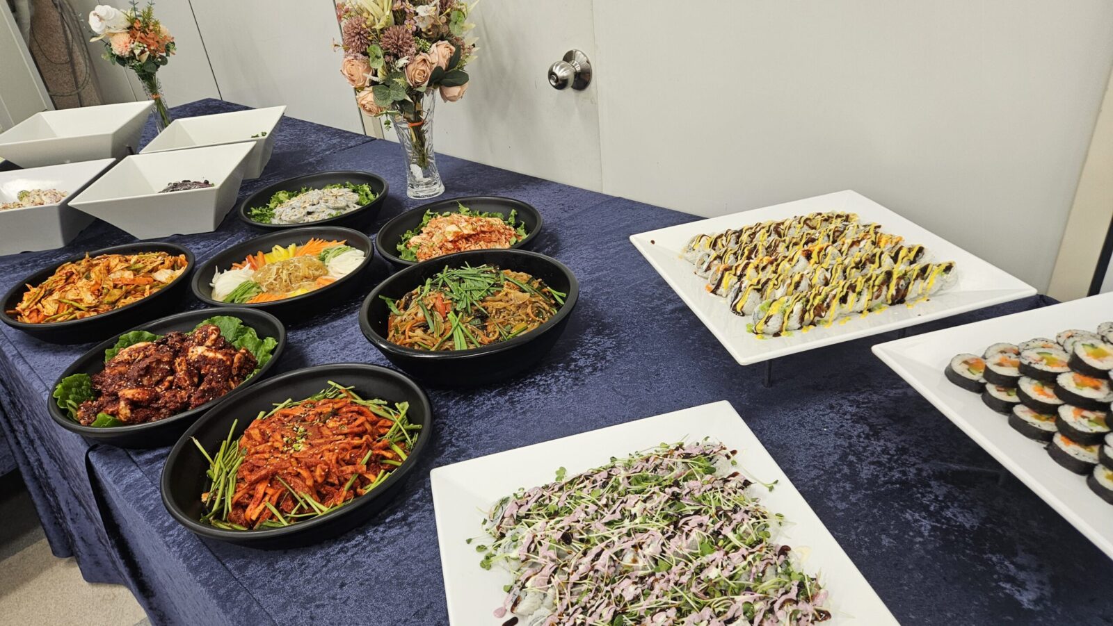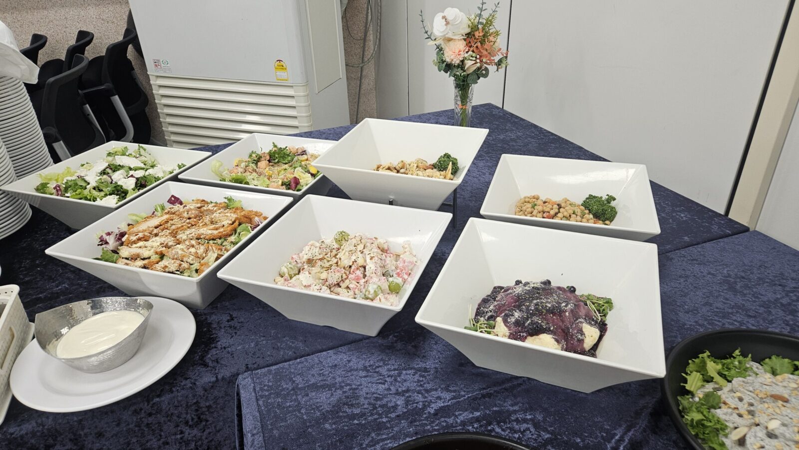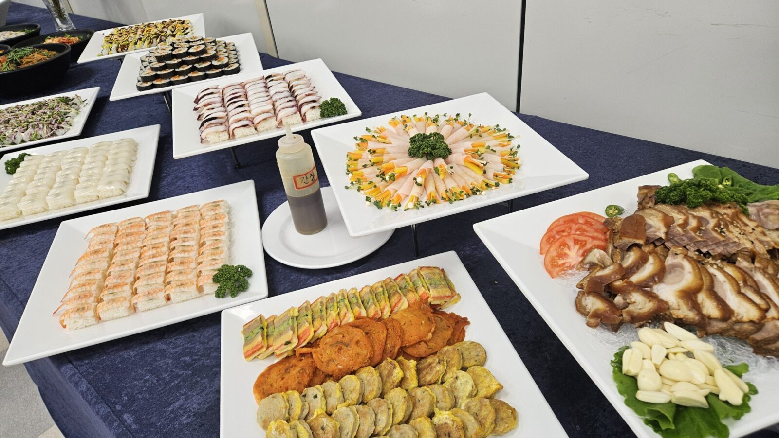 따뜻한 음식은 행사 후반까지 온도가 유지될 수 있도록 관리했고, 차갑게 제공되는 메뉴는 신선함이 살아 있도록 타이밍을 맞춰 세팅했다. 포천 출장 뷔페를 준비하다 보면 항상 느끼는 부분이지만, 이런 공공기관 이·취임식 저녁 행사는 음식이 앞에 나서기보다는 자리를 편안하게 만들어주는 역할을 해야 한다고 생각한다. 화려함보다는 정돈된 느낌, 빠른 진행보다는 여유 있는 식사가 어울리는 자리였다.